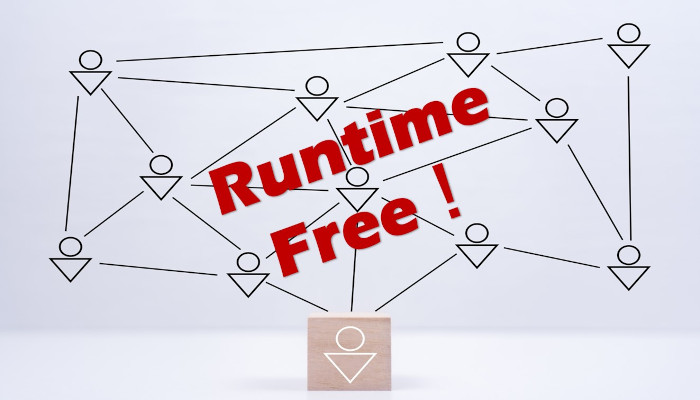 作成したレポートや問い合せ画面のランタイム(アプリケーション)は、何人にでも配布・実行ができます。