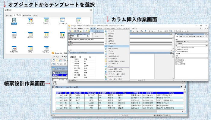 InfoMakerは、さまざまなビジネスシーンにおいて実用的なテンプレートを豊富に用意しています。