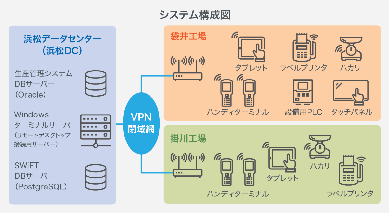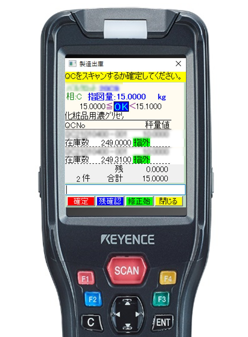「現場からは『作業効率が上がった』と喜ばれています。SWiFTは、ハカリや生産設備とPLC※2連携しています。ハカリとのデータ連携は、ハンディターミナルスキャンで、指図値に対応したハカリか、作業手順通り進めているか、秤量対象は正しいか(品番、ロット、合否判定、使用期限)のチェックをしつつ、ハカリから取得した秤量値が指図値と一致しているかをチェックし、正しいハカリを使い正しい手順で指図通りの秤量ができた時に限り次工程に進めることができようにしました。また、生産設備との連携では、ハンディターミナルスキャン時に、指図の内容と設備に手動設定した内容が一致した場合に限り、生産設備の開始ボタンが使用可能になる仕様としました。このようにしているためミスが起こらないつくりになっています。ハンディターミナルの作業レスポンスは、リモートデスクトップ運用なので早いです。そして、SWiFTは生産管理システムとも連携しているので、データ上の在庫と実在庫との差異が激減しました。袋井工場で約60トンの総原料が棚卸後の差異で数百kgあったのですが、連携後は差異が10Kg程度と飛躍的に精度を上げられました。在庫の棚卸業務にかかる時間も以前の4分の1程度まで削減できて、生産管理部門からもびっくりされました」(藤田氏)