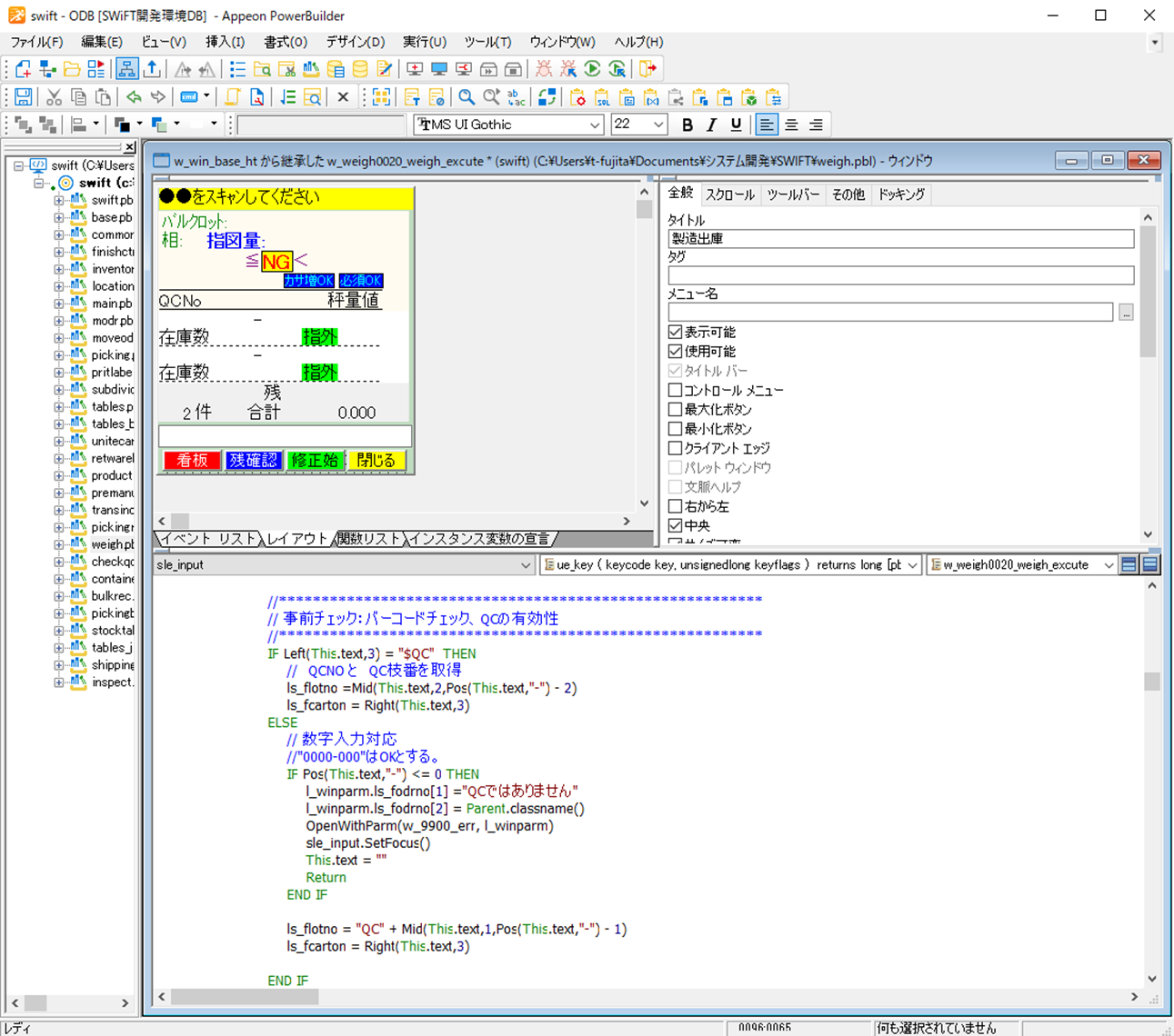 ICT推進課がスクラッチ開発した業務システムの代表格が、「製造実行システムSWiFT」だ。生産管理システムや生産設備と連携し、在庫管理やピッキング、原料、中間製品、バルク製品の投入チェック、製造チェックなどを行うSWiFTは、ハンディターミナル運用を含めすべてPowerBuilderで開発された。