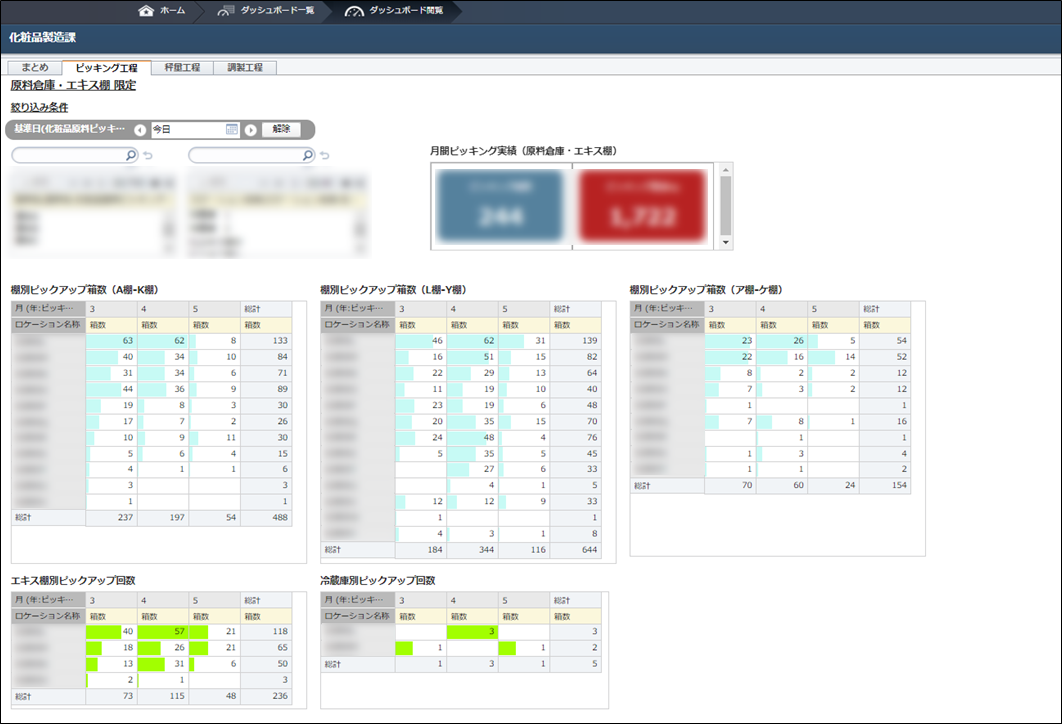「SWiFTは、ピッキング実績としてロケーションコード毎のピックアップ回数を常時モニタリングし、よく使う原料はより近くに配置してフリーロケーション化に繋げ、原材料毎の秤量時間も自動計測して手順の見直しを行うなど、現場主導のカイゼン活動のPDCAに役立ててもらっています。作業者に手入力させず作業時間を自動収集しているので、DX化に繋がっています」(藤田氏)