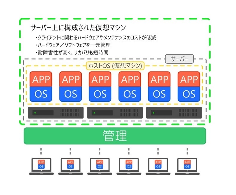 リモートワークやハイブリッドワークが普及する中で、VDIの必要性が減り、より柔軟なクラウドベースのデスクトップソリューションや、個別のデバイス管理が主流になるケースがあります。