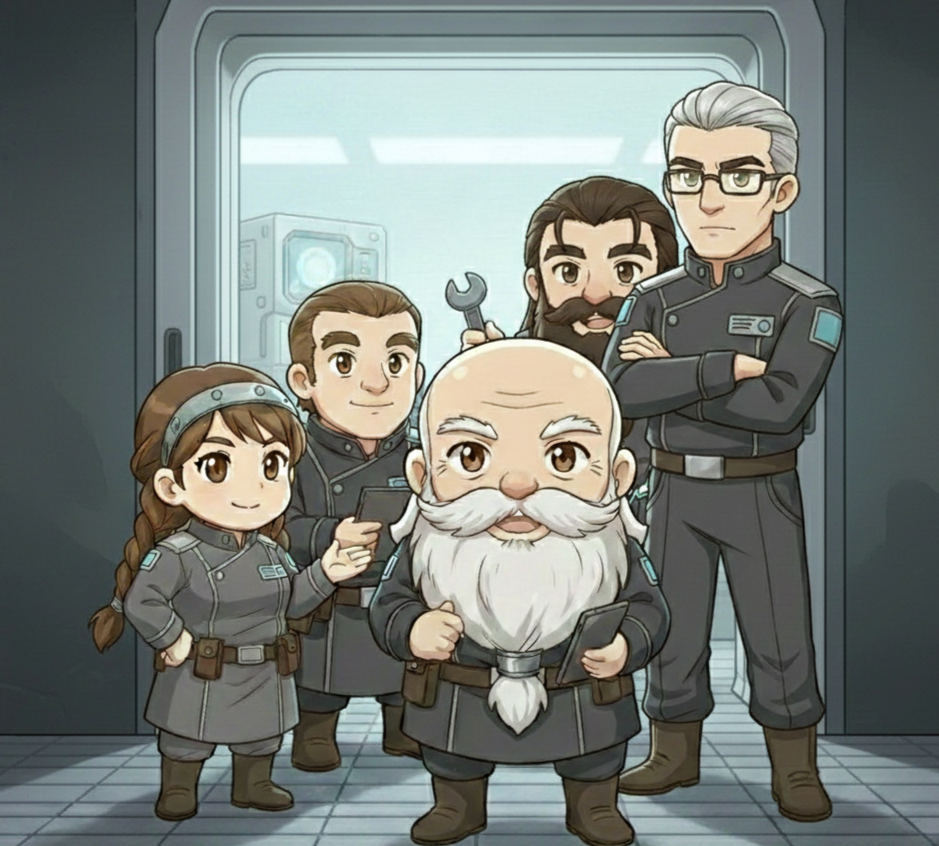足早にエレベーターへ案内される。後ろでは他のメンバーがヤマチュウに駆け寄っていた。 「ヤマチュウさん! ご無沙汰です! 覚えてますか? ヤッスーとイナッチ、それに Ms.ケーコです!」 彼らもドワーフ族のようだ。どうやらヤマチュウがここで働いていたのは事実らしい。