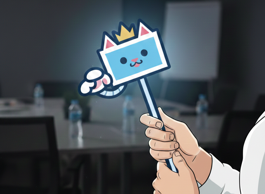 そう言いながら、タカシがリュックから「ねこぴスティック」を取り出した、その時。 スティックが激しく点滅し、聞き慣れた声が響き渡った。