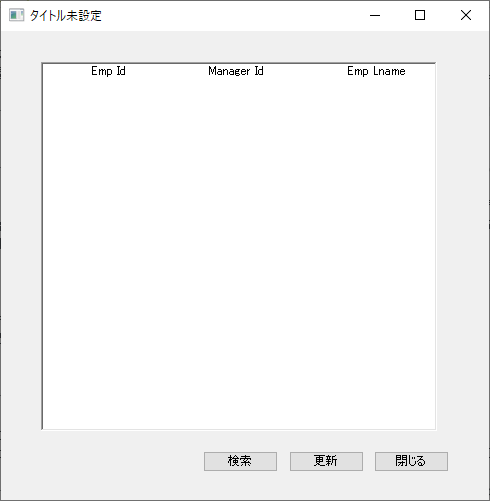 今回のアプリは、ブログ第 2 弾で選んだ「 emp_id (従業員 ID)」、「manager_id (マネージャー ID)」、そして「 emp_lname (従業員の名字) 」という 3 項目の情報を、[検索]ボタンをクリックした瞬間にデータベースから取得して、アプリ上のデータウィンドウに表示させるというものです。なので、[検索]ボタンにそういった動きをするコードを書いていきましょう。