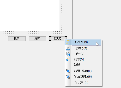 そのボタンに合わせたコードを書くときは、ボタンを右クリックして「スクリプト」を開くんでしたよね。