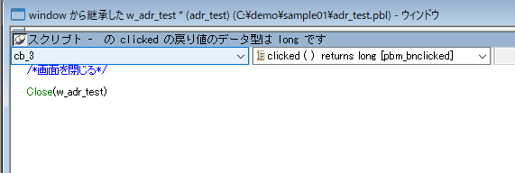 以前、アプリケーションオブジェクトの「Open」スクリプトで「w_adr_test」というウィンドウを開いていましたよね。