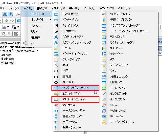 新しいウィンドウを [新規作成] から立ち上げて、メニューバーから [挿入] – [コントロール] で「シングルラインエディット」と「マルチラインエディット」をクリックしてそれぞれ作成したウィンドウの上に配置してみてください。