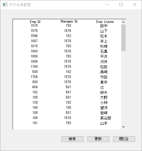 どんなアプリだったかというと、人の名前や所属番号をデータベースから取得し、それを編集し、最後は更新ボタンをクリックしてデータベースに反映させるというものです。