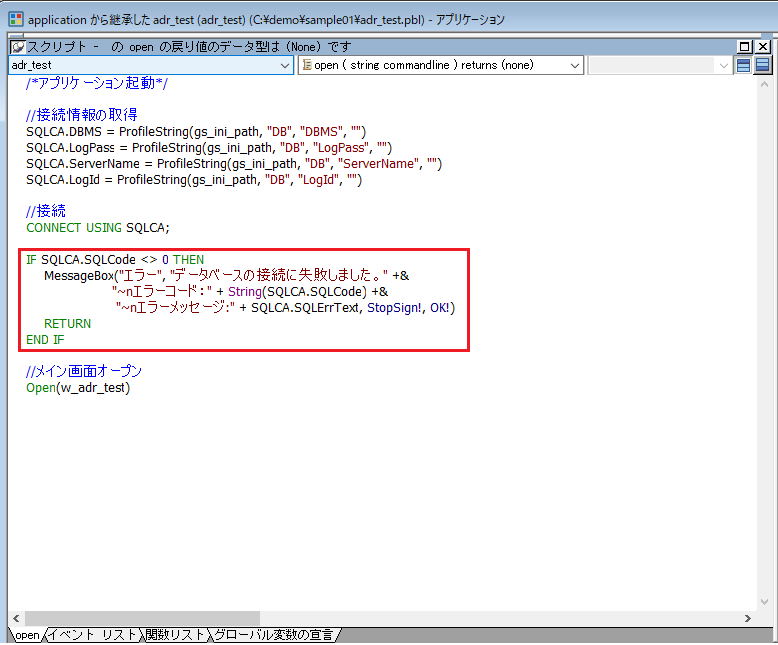 あとは皆さんが覚えているか不安の「PowerBuilder 入門!! ~第 3 弾データベースへの接続~」にもあったこちらの IF 文。
