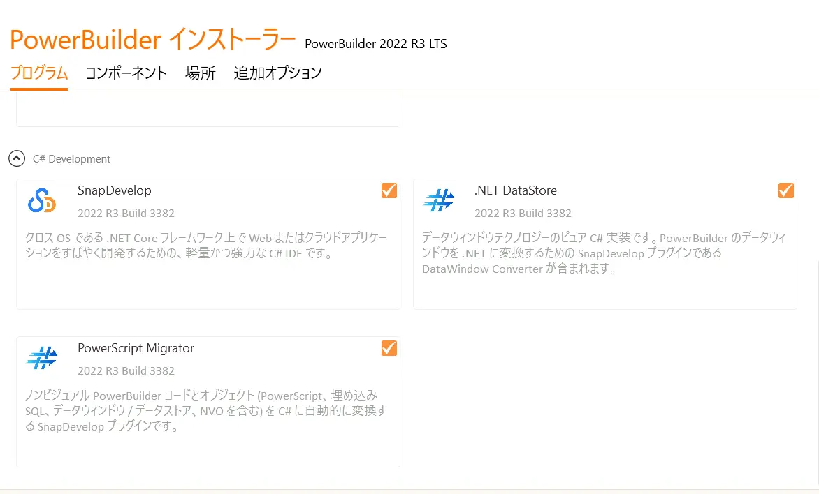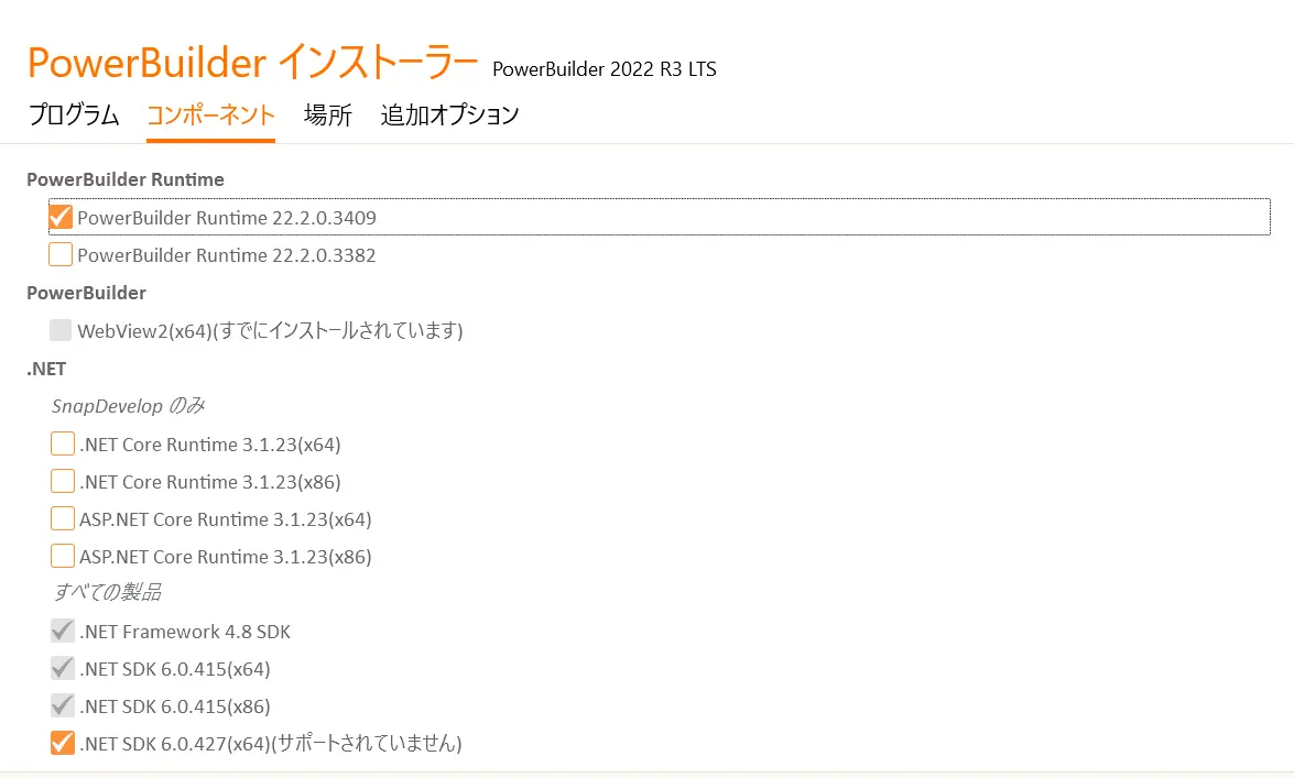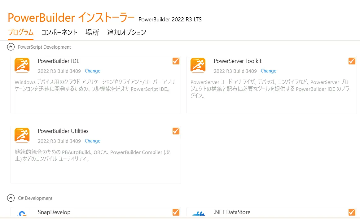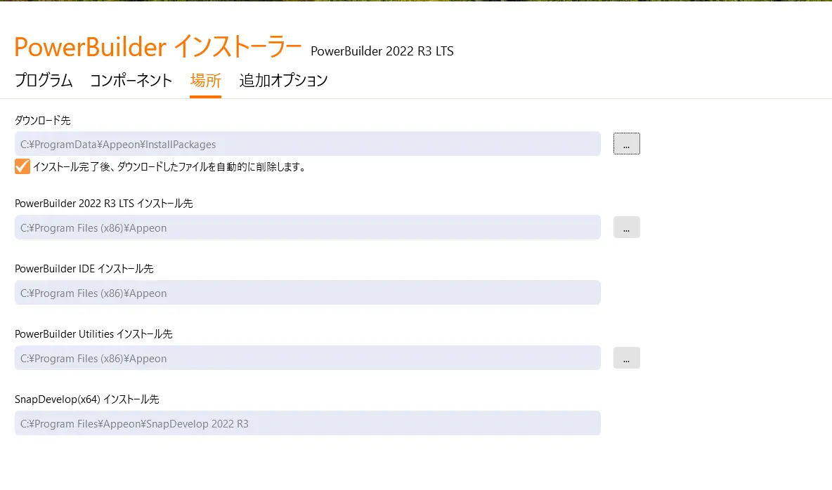 「PowerBuilder だけを使いたい」という方や、特に指定が無い方については、気にせずデフォルト状態のまま進めてもらえれば大丈夫です。