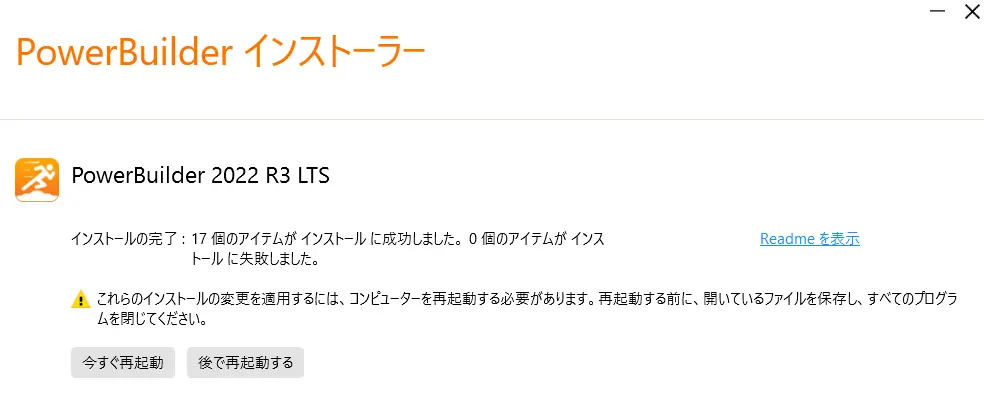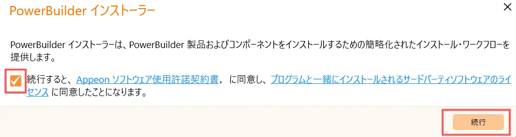 PowerBuilderInstaller_bootstrapper.exe をダブルクリックして PowerBuilder インストーラーを起動します。