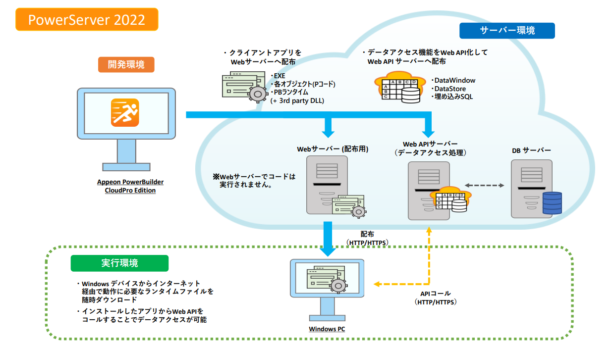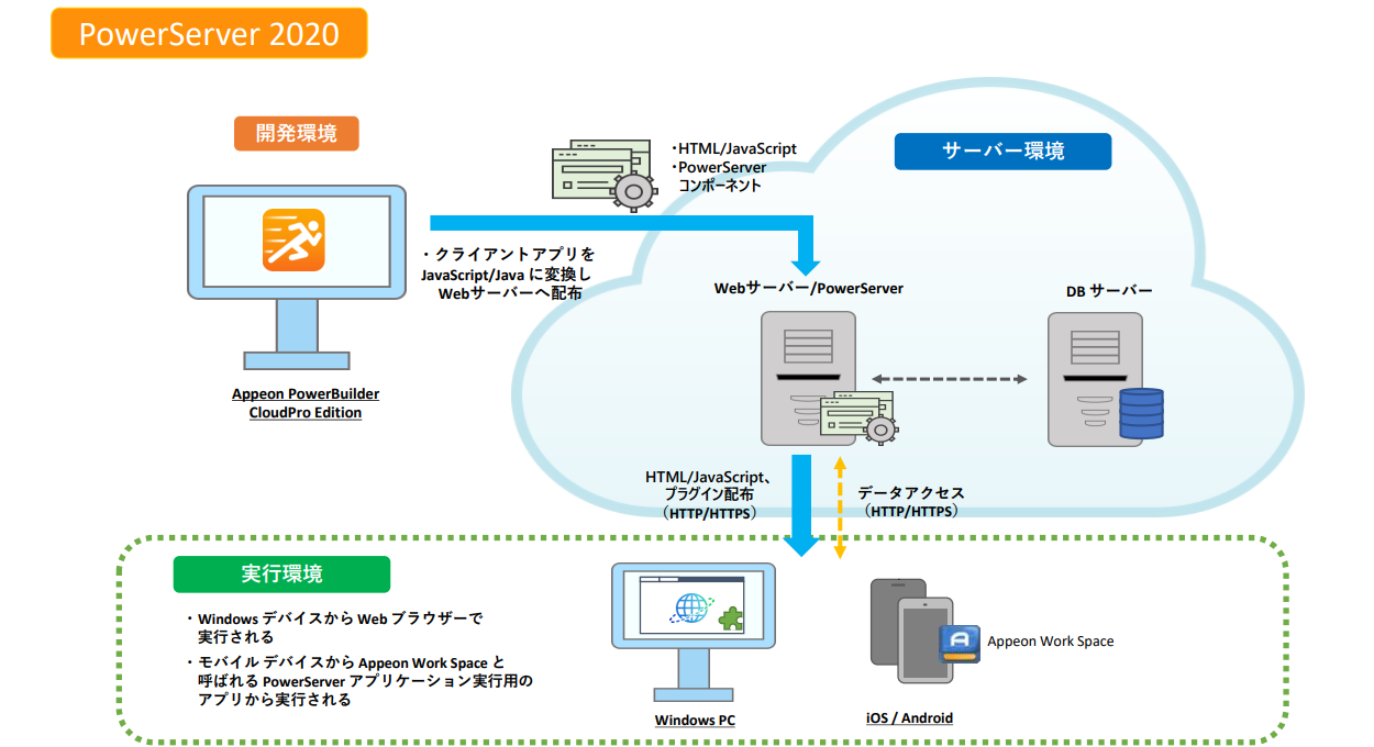 旧 PowerServer は端的に言うと、 PowerBuilder で作ったアプリを Web 上で動かせるようにした製品のことです。