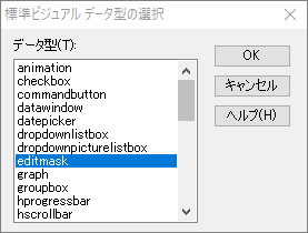 [OK] をクリックすると、下記のようにデータ型の選択画面が表示されます。