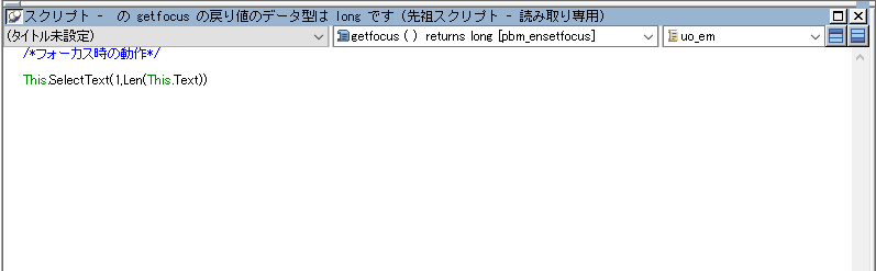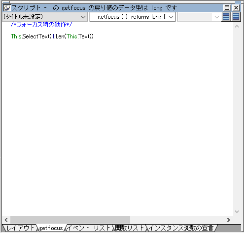 /*フォーカス時の動作*/ This.SelectText(1,Len(This.Text))