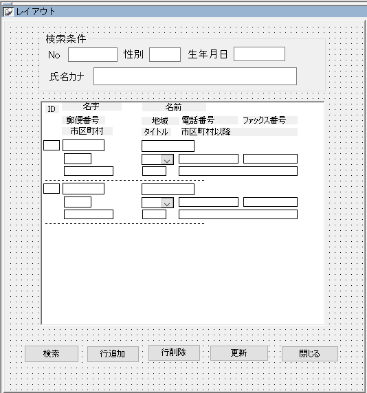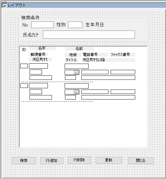 たとえば以下のように、検索条件から対象者を検索してデータウィンドウに表示するアプリがあったとします(^^)/