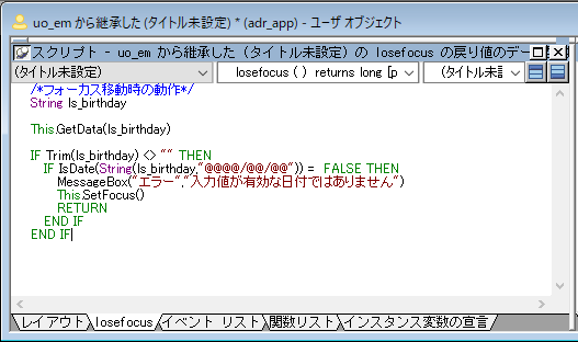 エディットマスクに関しては「em」なので、ユーザーオブジェクトの頭文字と併せて、「uo_em」と年月日を意味する「ymd」を合わせて「uo_em_ymd」という名前にします。