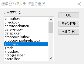 データ型を選択するウィンドウが出てくるので、「editmask」(エディットマスク) を選択します。