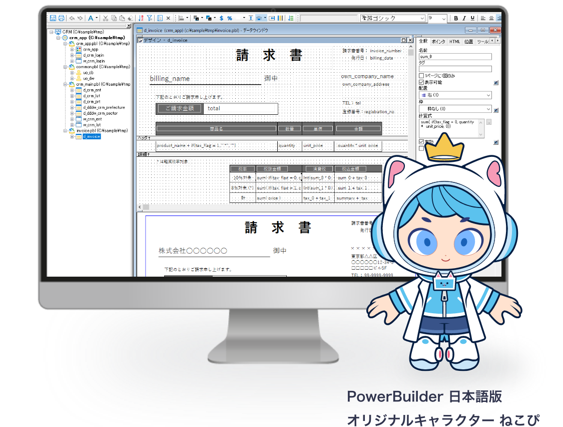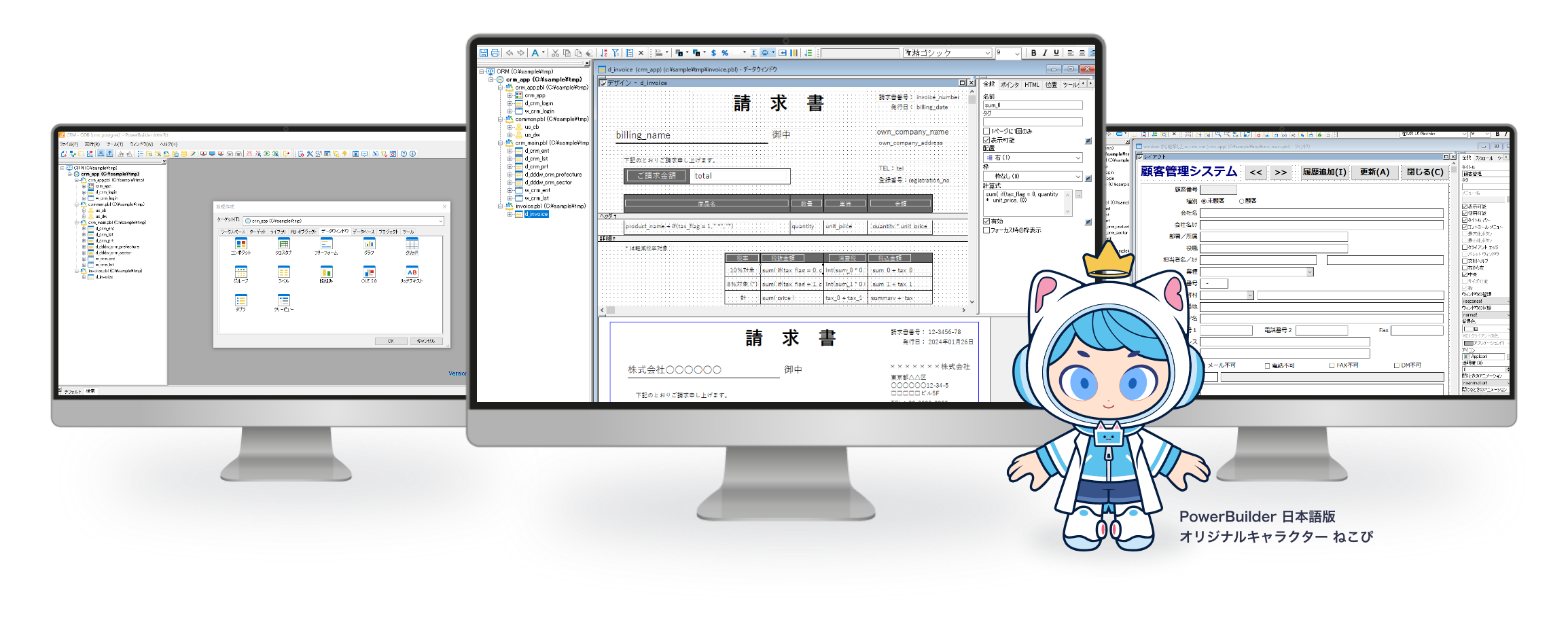 PowerBuilder最大の特長であるデータウィンドウを使えば、データベースのデータを視覚的にさまざまな形式で表現することができ、画面や帳票のイメージを高速に作成できます。作成したイメージはそのままシステムに組み込むことができるのでユーザーニーズとのギャップを抑えられます。